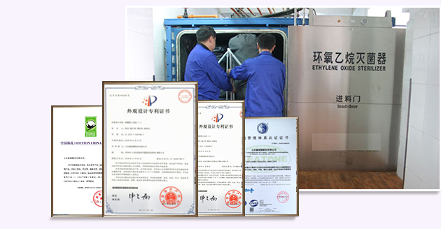 • 21道棉被生產工藝,新生兒襁褓類產品采用環氧乙烷丙菌處理